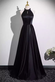 This elegant A-line black satin halter dress combines timeless sophistication with modern style. Its flowing silhouette flatters every figure, while the smooth satin fabric adds a luxurious sheen perfect for evening events. The halter neckline enhances the shoulders and neckline, making it an ideal choice for prom or formal parties. Designed for comfort and grace, this long dress ensures you stand out with understated elegance.