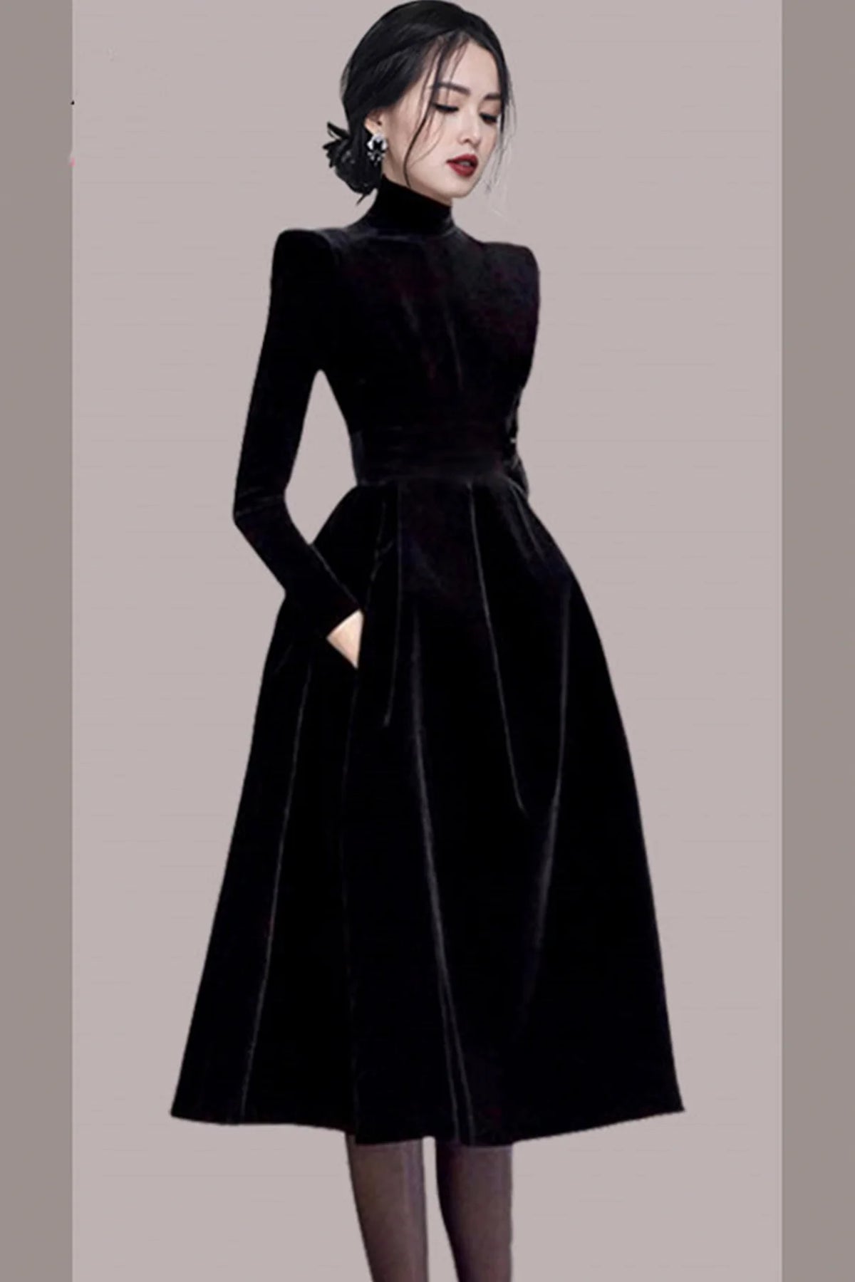 Long Sleeve Elegant Velvet Prom Dresses Party Dresses