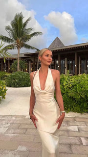 Ivory Halter Sexy Backless Long Sleeveless Off-the-shoulder Prom Dress Party Dress Cocktail Dress Homecoming Dress Evening Dress - US 2 / UK 6 / EU 32