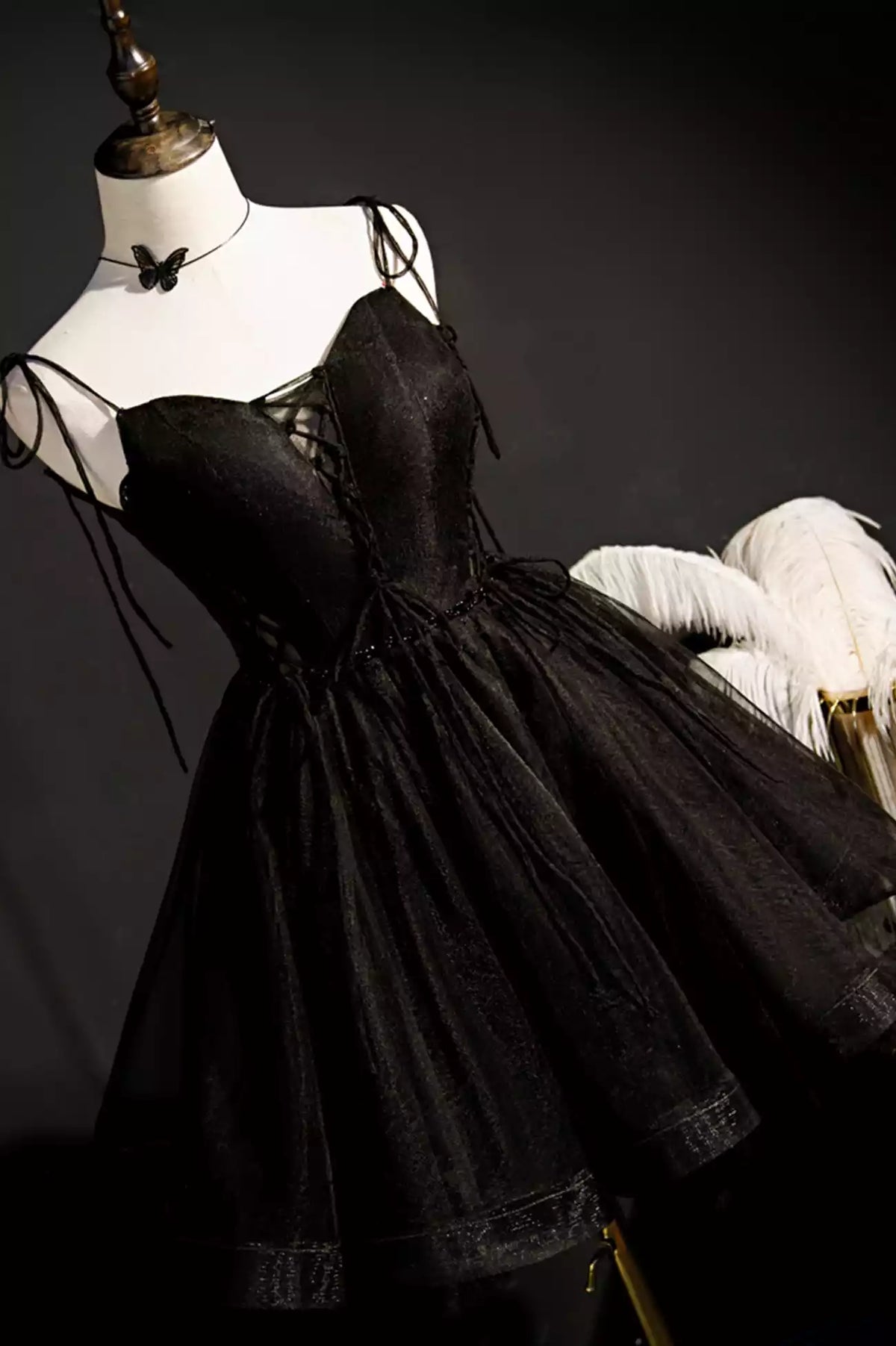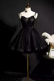Lovely A-Line Spaghetti Strap Black Tulle Short Prom Dress Party Dress