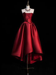 Lovely A-Line Strapless Burgundy Satin Hight Low Prom Dress Party Dress - US 2 / UK 6 / EU 32