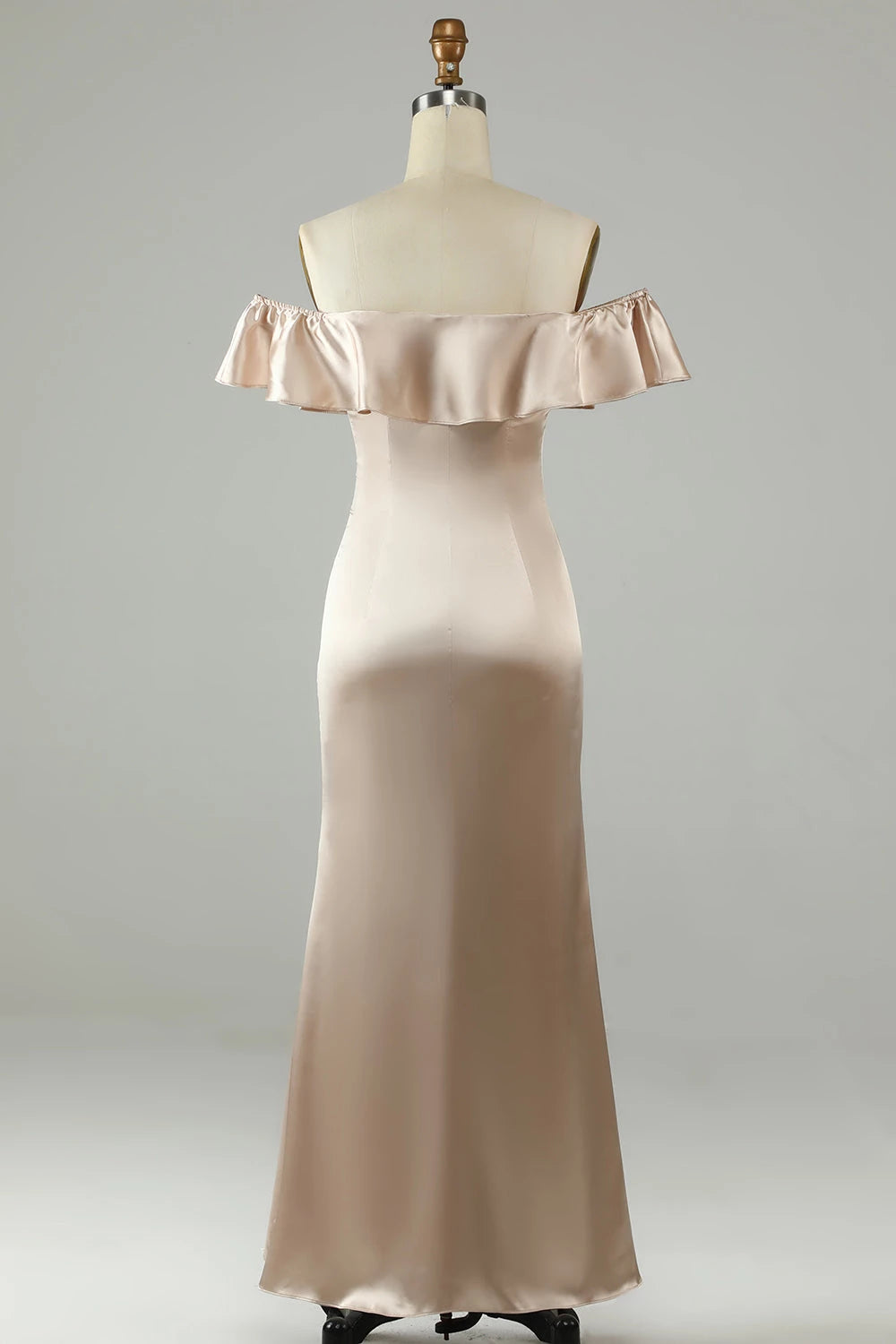 elegant off-the-shoulder, sleeveless mermaid dress features a romantic ankle-length design perfect for special occasions. Its fitted silhouette enhances your curves, Ruffles, creating a graceful and confident look ideal for parties and formal events. Combining timeless style with modern sophistication, this dress offers both comfort and flair, making it a must-have addition to any wardrobe.