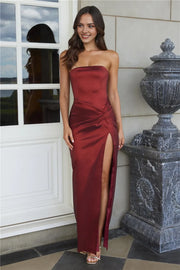 elegant floor-length party dress features a strapless, sleeveless sheath design with a classic off-the-shoulder neckline, Mid Open Back,Slit,combining timeless style and modern sophistication. Its sleek silhouette enhances your figure, making it an ideal choice for formal events and special occasions. Crafted to provide comfort and confidence, this dress is a standout piece for any wardrobe.