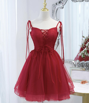 Tulle Red Lace-up Sleeveless Off-the-shoulder Short Prom Dress Party Dress Cocktail Dress Homecoming Dress Evening Dress
