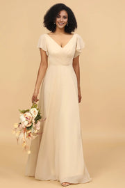 V Neck Cap Sleeves A-Line Classic Off the shoulder Floor Length Prom Dress Hot Sale For Women