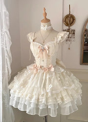 Vintage Beige Sweetheart Bow Lace-up Design A-line Tulle Tiered Prom Dress Party Dress Cocktail Dress Homecoming Dress Evening Dress - US 2 / UK 6 / EU 32