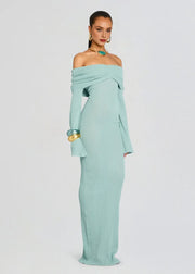 Chic Sheath Off Shoulder Long Sleeve Open Back Floor Length Plus Size Prom Dress - US 2 / UK 6 / EU 32