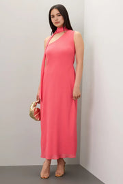 This prom dress features a sheath silhouette. It has a one-shoulder neckline with sleeveless design. The tie accent and side slit add chic charm, and the floor-length cut (available in plus sizes) is perfect for prom events. Flowing fabric with elegant tie detailing creates a chic and sophisticated prom look.