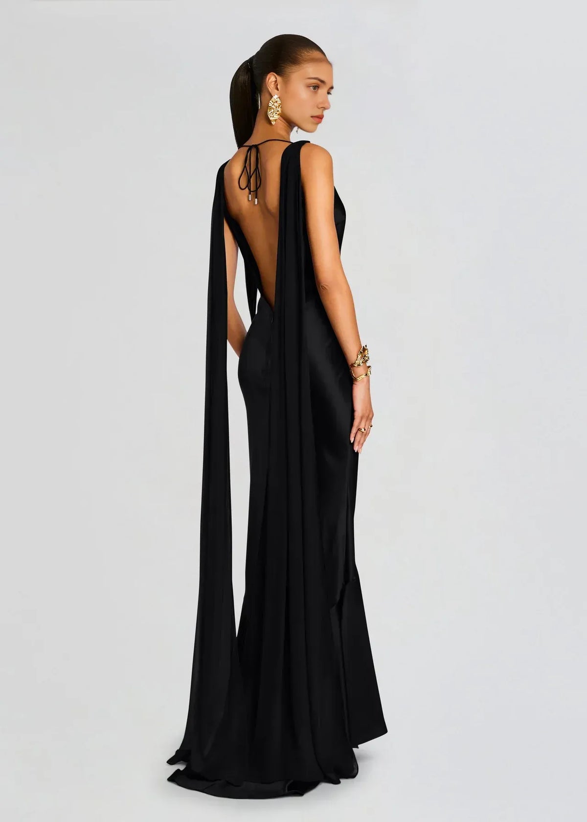 Dramatic Sheath Boat Neck Sleeveless Cape Back Floor Length Plus Size Prom Dress - US 2 / UK 6 / EU 32