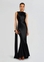 This prom dress features a sheath silhouette that offers a sleek and figure-hugging fit. The boat neck design brings a dramatic and captivating touch, while the sleeveless style provides an effortless and chic look. The cape-back detail adds elements of glamorous charm, enhancing the dress’s overall appeal. With a floor-length design, it’s ideal for prom events, ensuring the wearer looks dramatic and confident.