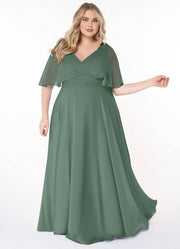 Gorgeous Plus Size A Line V Neck Flutter Sleeve Low Back Floor Length Bridesmaid Dress