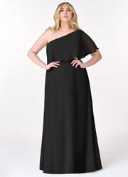 This magnificent plus - size dress features an A line silhouette, offering a flowy and graceful look. The one shoulder neckline exudes chic and sophisticated vibes, while the flutter sleeves add a touch of elegance. The open back detail brings a stylish and alluring element, and the floor length skirt creates a truly magnificent and unforgettable style, perfect for bridesmaid duties.