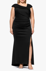 Stylish Mermaid Asymmetrical Neck Cap Sleeve Ruched Back Floor Length Plus Size Evening Dress - US 2 / UK 6 / EU 32