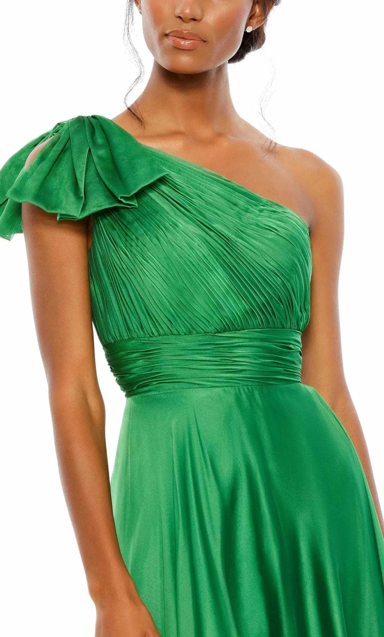 asymmetrical sleeveless green prom dress features a modern one-shoulder design and an elegant A-line silhouette that flatters any figure. Cummerbund, Rosette Bow Its floor-length cut adds sophistication, making it ideal for formal events and special occasions. Crafted with simplicity in mind, this dress combines timeless style with contemporary flair, ensuring you stand out gracefully at every event.