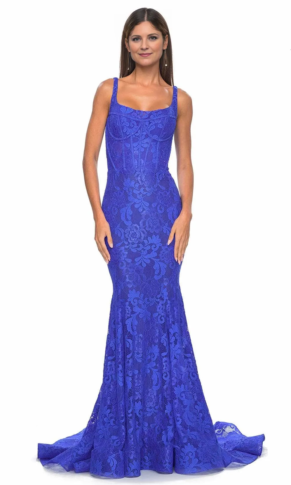 Blue Floral Lace Scoop Neck Spaghetti Strap Sleeveless Off the shoulder Floor length Cocktail Dress Homecoming Dress Evening Dress Party Dress Prom Dress