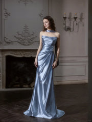Beautiful Floor Length Prom Dresses for Women Simple PBlue Sheath Strapless Feather Rhinestone Satin Long Wedding Dress Prom Dress Cocktail Dress Evening Dress Party Dress