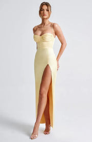 This evening dress has a sheath silhouette for a sleek, figure-hugging fit. The sweetheart-neck design brings a bright, lively touch, while the spaghetti-strap style keeps it delicate. The zipper-back detail adds practicality, and the floor-length fit makes it ideal for evening events helping the wearer feel confident and eye-catching.