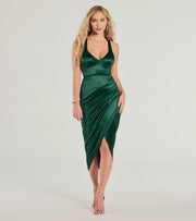 This captivating dress features a sheath silhouette, hugging the body gracefully for a vivid and memorable look. The V neck design adds a touch of charming allure. With a sleeveless cut, it keeps a sleek and modern style. The crisscross back detail ensures a lovely and seamless fit, and the midi - length skirt makes for a truly captivating and unforgettable appearance, perfect for prom events.