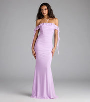 Charming Mermaid Off Shoulder Ruffle Short Sleeve Zipper Back Floor Length Prom Dress - US 2 / UK 6 / EU 32
