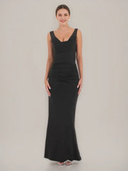 This elegant evening dress features a sophisticated column silhouette with a graceful cowl neck and ruched detailing that enhances its flattering fit. The backless design adds a touch of allure, while delicate pearl accents provide refined embellishment. Perfect for formal events, parties, or prom, this dress combines classic style with modern elegance to ensure you stand out with confidence and poise.