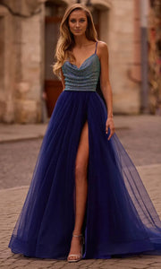 Cowl Neck Iridescent Beaded Sleeveless Off the shoulder Spaghetti Strap Floor length Cocktail Dress Homecoming Dress Evening Dress Party Dress Prom Dress