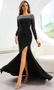 Cowl Neck Long Sleeves Mermaid Black Floor length Prom Dress Hot Sale For Adults - US 2 / UK 6 / EU 32