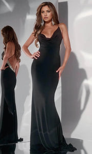 elegant floor-length prom dress features a romantic off-the-shoulder design with a flattering cowl neckline and sleeveless sheath silhouette. High Slit Crafted to enhance your natural shape, it offers both comfort and sophistication, making it perfect for formal occasions. Its timeless style ensures you’ll stand out with grace and poise.