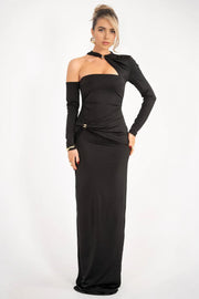 Cutout One Shoulder Sheath Ruched Zipper Back Floor Length Female Prom Dress  - US 2 / UK 6 / EU 32