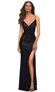 elegant floor-length prom dress features a sophisticated deep V-neck and a sleeveless sheath design, offering a sleek and flattering silhouette. Sequin High Slit Crafted to enhance graceful movement, it provides both comfort and style for memorable events. Ideal for those seeking a timeless yet striking look for special occasions.