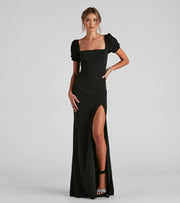 Dramatic Mermaid Square Neck Puff Short Sleeve Lace Up Back Floor Length Prom Dress - US 2 / UK 6 / EU 32
