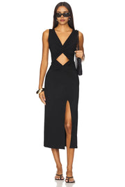 Dramatic Sheath V Neck Sleeveless Cutout Twist High Slit Midi Length Prom Dress