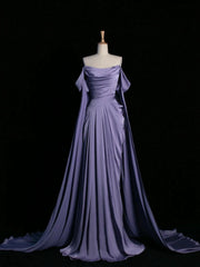 Elegant Satin Floor length Long Prom Dress Purple Draped Bodice Formal Party Dress