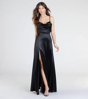 Elegant Sheath Cowl Neck Spaghetti Strap Bow Back Floor Length Prom Dress - US 2 / UK 6 / EU 32