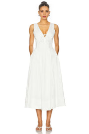 Ethereal A Line Plunge Neck Sleeveless V Back Midi Length Prom Dress