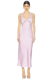 This prom dress features a sheath silhouette. It has a sweetheart neckline with a sleeveless design. The tie-back style with lace detail adds a delicate charm, and the midi-length cut is perfect for prom events. Satin fabric and elegant back detail create a dreamy and sophisticated prom look.