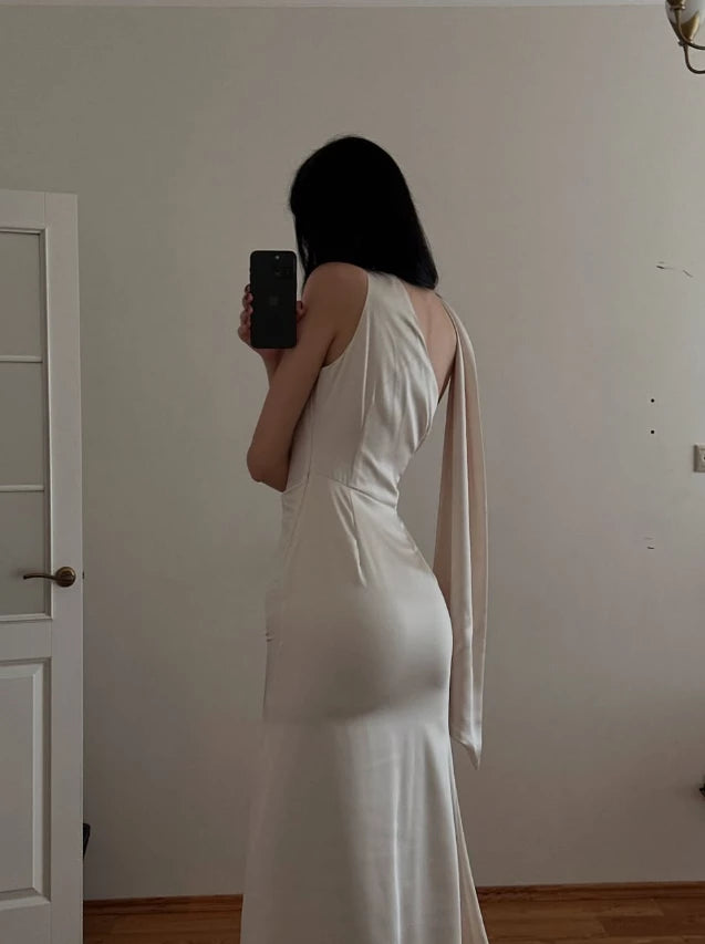 Beautiful Long Prom Dresses for Women Simple Light Apricot Satin Long Sleeveless Off-the-shoulder Wedding Dress Prom Dress Cocktail Dress Evening Dress Party Dress