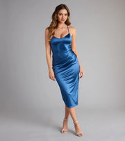 Glamorous Trumpet Plunge Neck Spaghetti Strap Lace Up Back Midi Length Prom Dress
