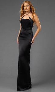 floor-length prom dress features a halter neckline with an off-the-shoulder design, creating a sleek and refined column silhouette. Its sleeveless, Fitted Bodice, Thin Straps,tight fit accentuates the figure while offering an elegant and modern look for formal occasions. Perfectly tailored for comfort and style, this dress ensures a graceful and confident appearance at any special event.
