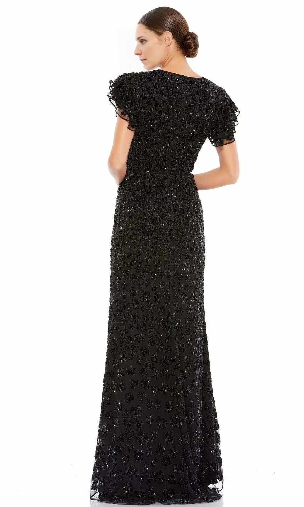 enchanting floor-length prom dress features a refined jewel neckline and elegant short sleeves, perfectly designed to enhance your silhouette with its sheath cut. Embellishments Fitted bodice Crafted to offer both style and comfort, it flatters every figure while providing a graceful, timeless look ideal for formal occasions. Elevate your evening wardrobe with this sophisticated and versatile dress.