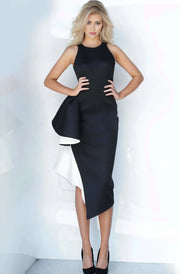 sleeveless sheath dress features a distinctive off-the-shoulder design, creating an elegant and modern silhouette. Falling to the knee, Two Tone Asymmetric Ruffle it balances sophistication with comfort, making it ideal for prom or special occasions. Crafted to highlight your figure, this unique dress offers a refined style perfect for confident ladies seeking a standout piece.