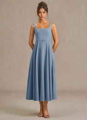 Light Fit and Flare Square Neck Sleeveless Square Back Midi Length For Ladies Prom Dress