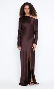 This prom dress has a sheath silhouette with silky satin fabric for a figure-hugging, glowing fit. The one-shoulder design adds a lush, distinct touch, while the long-sleeve style keeps it balanced. The open-back detail brings subtle allure, and the floor-length cut with a side slit balances softness and movement ideal for prom events, helping the wearer feel confident and poised.