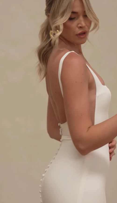 Mermaid Spaghetti Strap White Satin Long Sweep Floor length Wedding Dress Prom Dress Cocktail Dress Homecoming Dress Evening Dress Party Dress