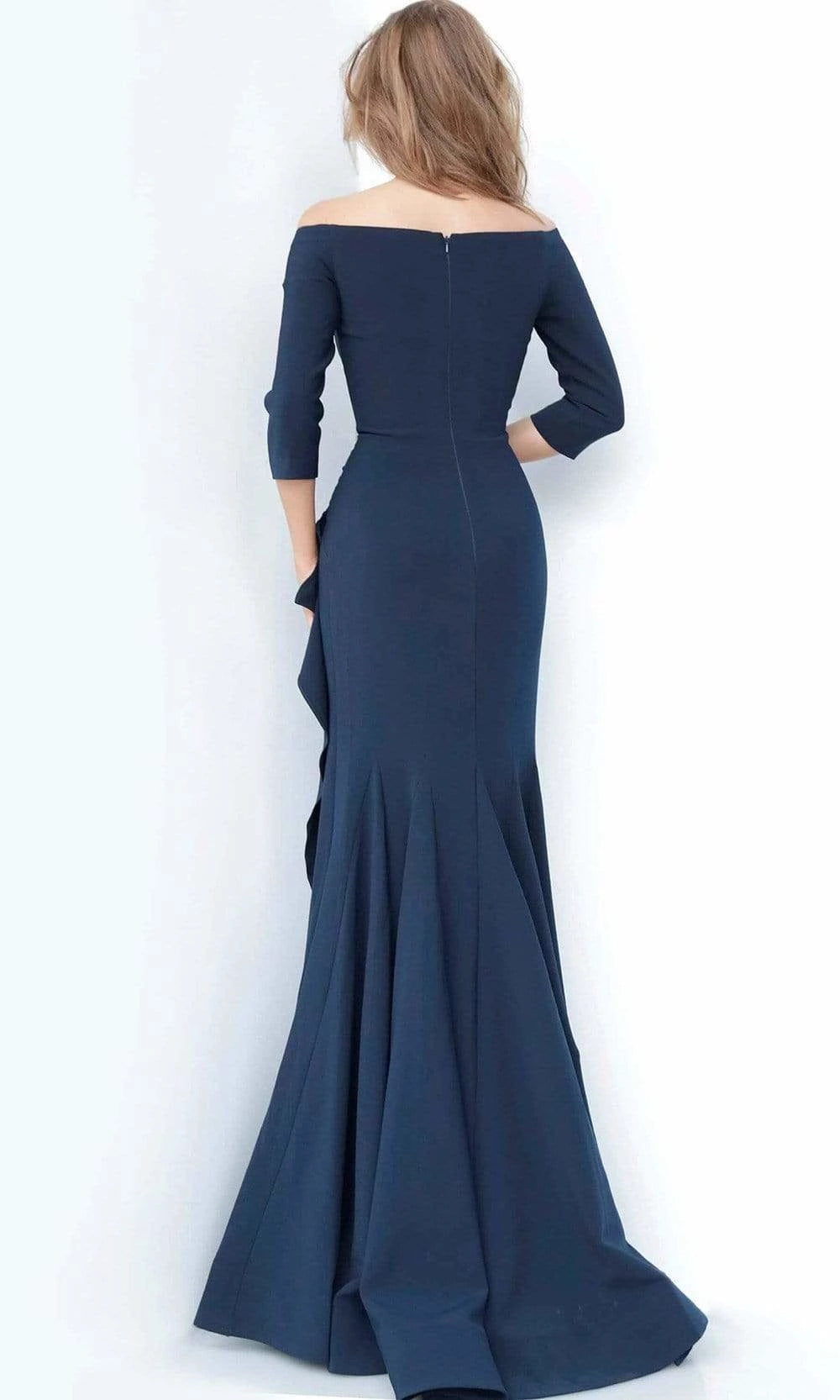 floor-length mermaid prom dress features elegant off-shoulder long sleeves, enhancing a graceful and refined look. Its form-fitting silhouette accentuates curves while offering a dramatic flare at the hem, Ruffles perfect for formal occasions. Designed for comfort and style, this dress ensures you make a memorable statement at any event.