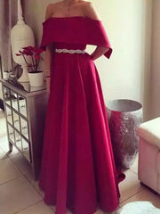 Off-The-Shoulder Floor-Length With Belt Satin Dresses Prom Dress