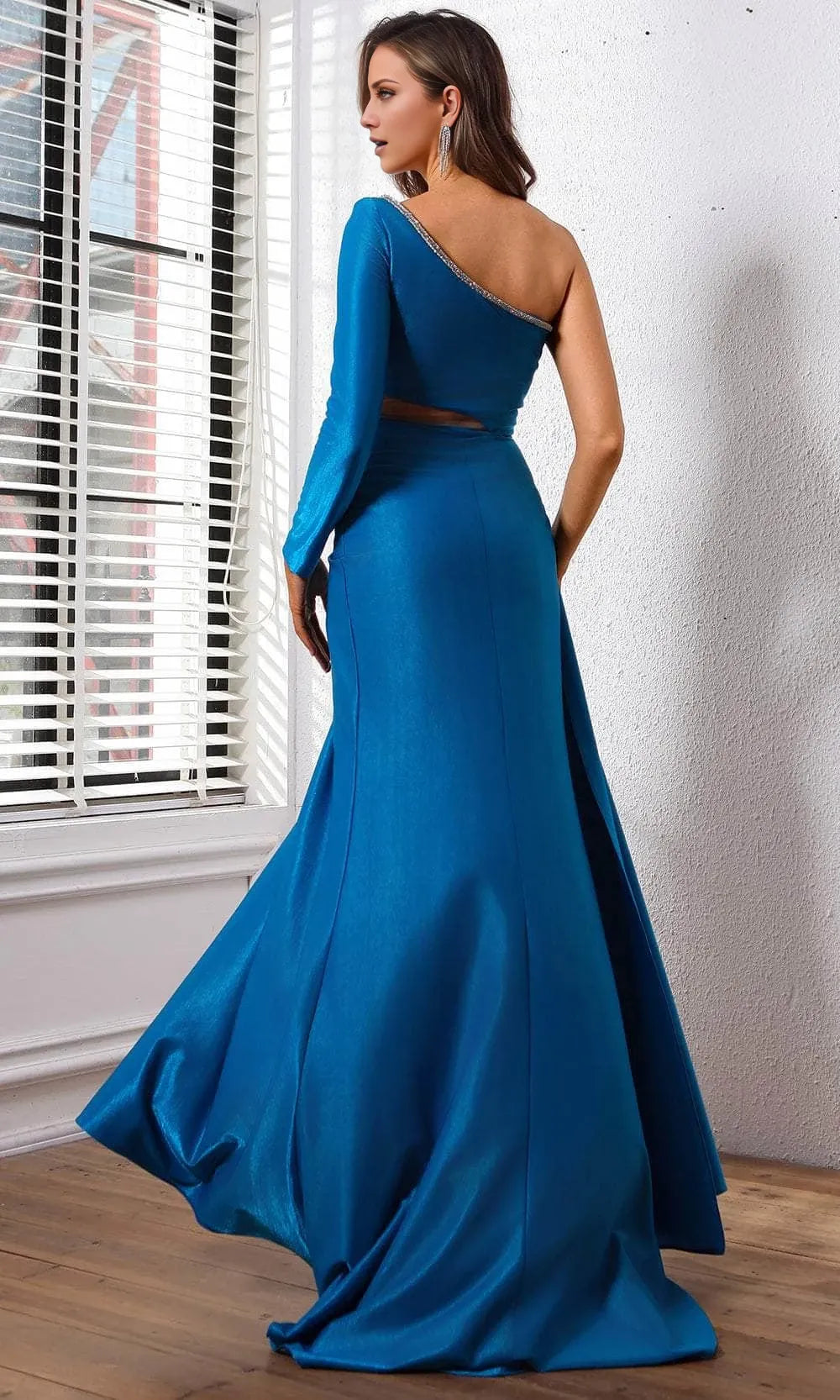 One Sleeved Illusion Cutout One-shoulder Long Sleeves With Slit Floor length Long Prom Dress Cocktail Dress Homecoming Dress Evening Dress Party Dress