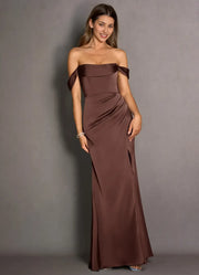 Sleek Trumpet Off the Shoulder Flap Sleeve Open Back Floor Length Female Prom Dress