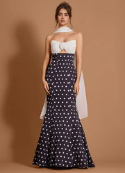 Polka Dot Mermaid Strapless Sleeveless Scarf Back Prom Dress occasion: Bridal showers Red carpet events Upscale parties Masquerade balls Formal corporate events White tie events Female guests