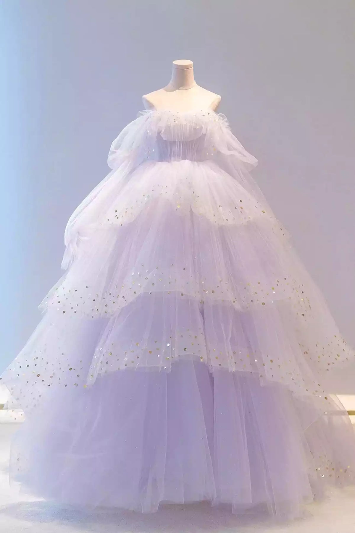 Purple Long Sleeve Floor Length Tulle Formal Dress Purple Sweet 16 Dress - US 2 / UK 6 / EU 32