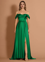 Satin Ballgown Off The Shoulder Sleeveless Lace Up Back Train Floor Length For Sale Prom Dress